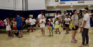 Families gather in the Salisbury Elementary School cafeteria to enjoy food and music before the start of the color run.