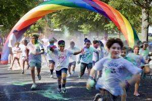 Salisbury Elementary School students sprint through clouds of color Oct. 4.