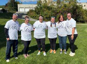Press Photos by Rebecca FoehrkolbEric Molitoris’s students raised the most money in the fundraiser and Dara Ackerman’s class was second. They earned the right to colorblast staff from SES. ABOVE: Eric Molitoris, Katie Kern, Amber Goodwin, Elaine Divers, Sue Young and Tracy Kahn are pictured before the blast.