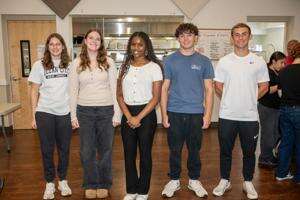 Members of Parkland High School’s LEO Club, Emma and Gwen Molnarko, Samira Bamba, Matthew Mellen and Cameron Becker are helping at the Community Fire Co. No. 1 Schnecksville monthly fundraising breakfast.
