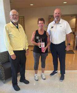 PRESS PHOTO BY SHARON SCHRANTZLower Macungie Township Commissioners Maury Robert and Brian Higgins meet Marcia Hittman at the Sept. 13 “Coffee with the Commissioners” event at the Lower Macungie Township Community Center. This event is held weekly at the community center 9-10 a.m. Saturdays. Residents are encouraged to attend and have a conversation with the commissioners.