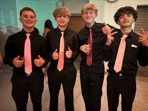 Press Photos by Sharon SchrantzStudents took to the dance floor during the annual Emmaus High School Homecoming Dance Oct. 11 at the school. ABOVE: Liam Iannetta, Ty Hubbs, Gavin Serbacic and Petey Pitsokas attend the dance “to hang out” while dressed to impress.