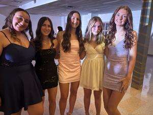 From left, Ava Silberman, Carolina Snyder, Payton Bennicoff, Mya Doucette and Camryn Haro attend the dance.