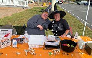 Janice Mack and Linda Zeller, both of Egypt — wearing the standard pointed Halloween witch hats — staffed the admission and registration tent for the car show. Both said they were grateful for the perfect weather.