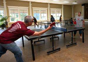 Mark Wyncoll and Joyce Esser play ping pong on the newly installed ping pong tables at the Kempton Community Center.