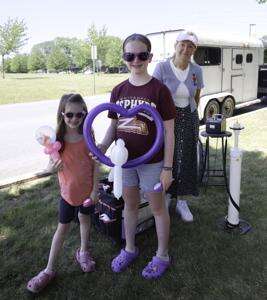 PRESS PHOTO BY DONNA GEWERTZCindy Zona, owner of Balloons by Cindy, of Northampton, provides balloon sculptures to sisters Mya (left) and Hannah Ihling during Whitehall Township Public Library’s summer reading program finale, held Aug. 9 at 3700 Mechanicsville Road, Whitehall.