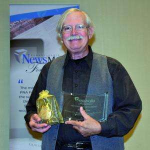 Press photo by Cathy CourrierLehigh Valley Press cartoonist and photojournalist Ed Courrier accepts the Sweepstakes Division VI Award on behalf of Bethlehem Press Editor George Taylor at the 2025 Keystone Media Awards Luncheon held Oct. 16 at the Sheraton Harrisburg Hershey Hotel. Bethlehem Press editorial staff and freelance correspondents scored the most Keystone Media Award points in this circulation category.