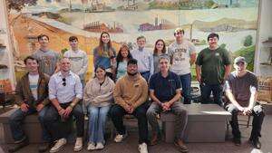 CONTRIBUTED PHOTOMassimo Toso, president and CEO of Buzzi Unicem USA; Krzysztof Burek, vice president of manufacturing and technical development of Buzzi Unicem USA; and students from Lehigh University tour Atlas Cement Company Memorial Museum Oct. 3. Also pictured is Ed Pany, curator of the museum.