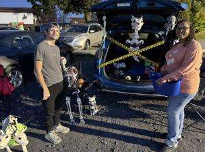 Jayden Reed and Angelica Padilla, both from Catasauqua, set up skeletons in Padilla’s trunk to provide a spooky visual while handing out candy. Reed said he is a recent Catasauqua High School graduate. He added he enjoys the Halloween season.