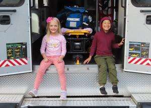 Press Photos by C. Richard ChartrandThe Emmaus Public Library hosted its annual Community Heroes Day celebration Oct. 2. Visitors met area first responders including firefighters, law enforcement officers and emergency medical technicians and toured fire trucks, police cars and ambulance vehicles. ABOVE: Lucy Steich and Carmine Mendez sit in an ambulance at Community Heroes Day in the parking lot of the Emmaus Public Library, 11 E. Main St.