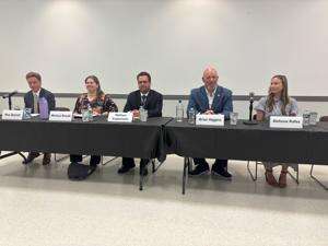 The candidates are as follows: Democrat Wesley Barrett, Democrat Melissa Bosak, Republican Matthew Guglielmello, Republican Brian Higgins, Democrat Stefanie Rafes and Republican Brian Shoemaker. Brad Osborne was the moderator. Shoemaker was unable to attend the forum.