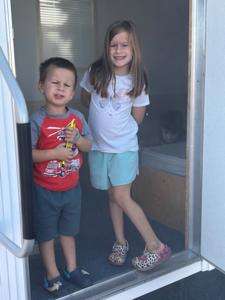 Nikolai and Amelia Festa learn about fire and smoke in the smoke simulation house at the Lower Macungie Fire Department open house event Oct. 4.