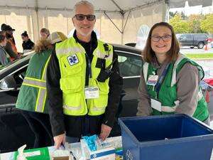 LVHN volunteers Grant Greenberg and Michelle Clifton organize materials for the next car.