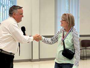 Day acknowledged Emmaus High School students Noelle Weiner, Anshi Kanani and Paige Salley for assisting with the “senior games” for the event. The senior games top scorer was Tonya Palmer, followed by Faye Eckroth and Kathy Rau. Recognizing the top scorers were all female, one male senior commented “the women are smarter” which received chuckles at his table.