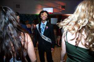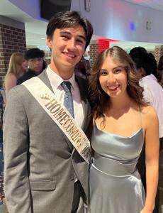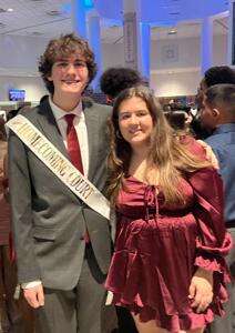Harry Schairer, a member of the Homecoming court has a photo taken with Madelynn Wascura.