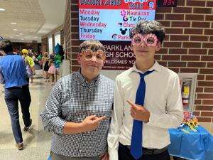 Lennie Vargas and Anthony Cacioppo-Fisher wear cool glasses at the Parkland High School Homecoming dance.