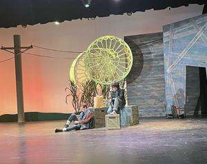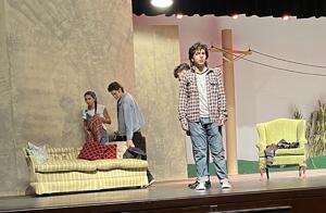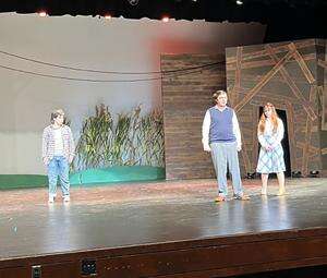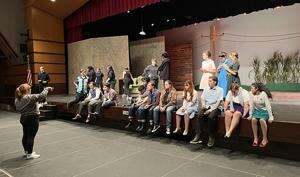 BELOW: Deven Ruiz as Ponyboy, Brady Davidson as Randy and Lila Furst as Cherry rehearse a scene from the play “The Outsiders.”PRESS PHOTOS BY MICHAEL HIRSCH