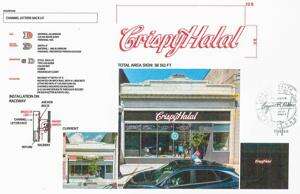 Mohammad Ayaz successfully petitioned for approval of sign band signage for “Crispy Halal” at 23 E. Third St. The COA stipulates the brick behind the raceway behind the channel letters, backlit with red LED lights, remain unpainted. The raceway is to be painted to match the brick, but must be attached to mortar joints. The individually-mounted aluminum letters are to be faced with a warm white color.