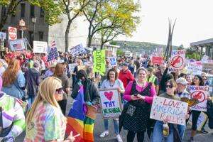 Residents marched in center city for the Oct. 18 “No Kings II’ rally, peacefully protesting President Donald Trump and his administration’s policies. It was a beautiful sunny day for the estimated 5,000 participants coordinated by Indivisible Lehigh Valley Bethlehem.
