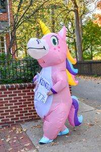 Wearing an English period outfit this marcher reminds us of the American Colonies break from an English king’s rule in the 1700s.