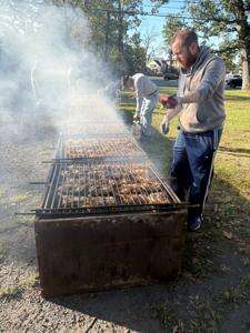 Jack Decker and Cody Schreiner prepare the chicken for customers.