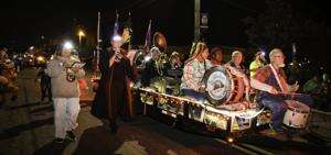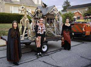 PRESS PHOTO BY DONNA GEWERTZNatasha Ziegler, Kaylee Hamm and Emily Wilson, all of Whitehall, bring the Whitehall Township Fire Department’s Haunted Hayride in the Parkway to the streets of Coplay Oct. 21 during the borough’s annual Halloween parade. Decorated floats traveled through Coplay to the delight of spectators lined up to enjoy the sights and maybe even catch some candy.