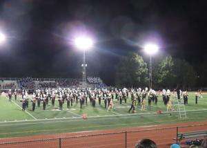 Area marching bands entertained music lovers at The Hornet Marching Band Classic band competition at Emmaus High School recently. ABOVE: The Emmaus High School Marching Band is on the field.