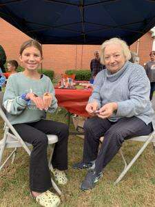 PRESS PHOTO BY KELLY LUTTERSCHMIDTAnnelise Piff, of Northampton, shows the designs on her hands, compliments of Janice Stavrou, of Slatington, who helped with facepainting and storytime and crafts, during Coplay Public Library’s fall festival Oct. 11 at the 49 S. Fifth St. site.
