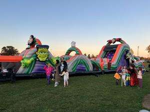ABOVE: Children enjoy the inflatable Frankenstein.