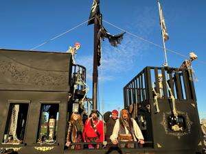 Gary Crivellaro is joined by his son Scott, Chris Delagant and Sandra Caldwell on the pirate ship, part of Main Deck Productions.