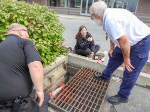 Amber Fuschetto and Kayla Galloway were going to the nearby Thirsty Turtle Tavern the previous evening when they saw the kitten running and followed it, then spotted it going into the storm drain. They contacted Whitehall Fire Department, which was on the scene for four hours. They stayed with the fire department until 2 a.m.