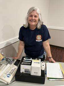 PRESS PHOTOS BY MICHAEL HIRSCHAlice Stahley, cashier and treasurer of the Schnecksville Fire Company, waits for customers to arrive at the fire company’s all-you-can-eat breakfast Oct. 26.