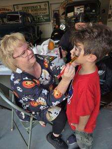 “I volunteered to do anything they needed me to do,” said another volunteer, as she applied face paint to Brodie Bair to the delight of his grandmother. “I even brought my daughter with me.”
