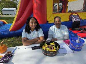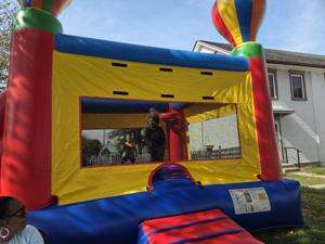 At the bouncy house, a mother and daughter team was busy welcoming children.