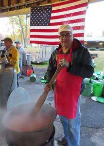 Tom Mack takes a break from stirring for a photo.