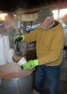 RIGHT: Earl Klinesmith takes home eight quarts of Emmaus Lions Club chowder.