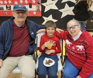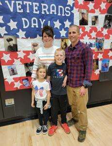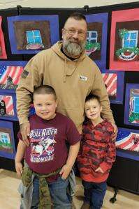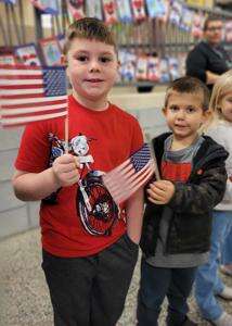 Local veterans and families received a bright and patriotic greeting from kindergartners Kain C. and Gavin K. during the school’s annual Veterans Day event.