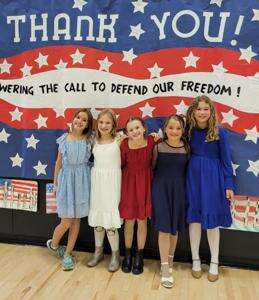 The staff and students at Northwestern Elementary dressed in patriotic colors to honor veterans. Proud students Kacie W., Aubrey H., Kataryna A., Ella B., and Rowan L.