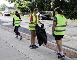 PRESS PHOTO BY DONNA GEWERTZMembers of Scout Troop 94 Sophia Deitzel, of Catasauqua; Cecilia Deitzel, of Catasauqua; and Audrey Yencha, of Coplay, pick up trash in the area of Front and Bridge streets Sept. 27 during the Catasauqua Main Streets annual fall cleanup.