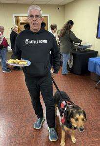 Debbie Bailey, with North Catasauqua Police Department administration, and Julie Santiago were all smiles as they ate a country-style breakfast and mingled with others in the social hall. Anthony Ranaldi said he also enjoyed the breakfast. He brought his service animal, Luke, with him to the event.
