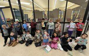 ABOVE: Students in Dana Sugra’s class show their book fair purchases.