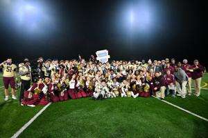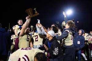 Whitehall football coach Andy Marino looked on like a proud father as his Zephyrs raised the District XI Class 5A championship trophy after defeating Pocono Mountain East, 35-24, on Nov. 8 at Catasauqua Middle School’s Alumni Field.