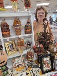 At a Halloween themed table, Roseann Davis offered a variety of handcrafted items like her pumpelstiltskins.