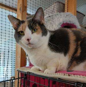 Dairy Queen - a lovely young calico girl with the queenly attitude. She loves people, but cats not so much. She always sits on high places to avoid the other cats in her room. She loves human visitors. If you want only one cat, this is the gal for you. Sit down on the sofa and she will be there with you.Dairy Queen was found outside an Allentown business, looking to get inside. She was already spayed. She is up date on shots; Combo tested negative, microchipped; date of birth is approximately 2022.Apply at www.forgottenfelines.org or call 610-760-9009 ext. 2.Adoption and visitation every Saturday at 6022 Mountain Road, Germansville.Forgotten Felines has been serving the Lehigh Valley since 1994. Since moving to Germansville in 2001, it serves only cats, no dogs, and also provides low cost spay/neuter twice per week for house cats, feral cats and small dogs.