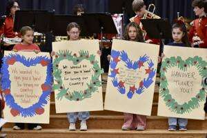 In the school’s auditorium, which was decorated in red, white and blue balloons and student made patriotic crafts, the Hanover ES community presented music, messages and salutes to veterans in attendance.