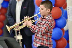Hanover students Andre G. and Eva S. played ‘Taps’ and ‘My Country ‘Tis of thee’ and the former was joined on trumpet by 4th and fifth grade music instruction teacher Clayton Reilly on ‘America the Beautiful’.
