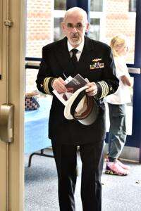 One appreciative veteran, U.S. Navy veteran Al Stuart, spent 30 years in the submarine service and drove from Lancaster in full uniform to surprise his granddaughters, Emi and Anna.