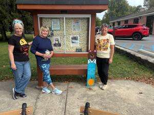 Press Photo by Sharon SchrantzAngela Faidley, Barb Martin and Audrey Erb recently spent some time hanging hand-painted bears along Main Street in Macungie, including at the town bulletin board notifying residents of happenings in the borough. ABOVE: This display pictured is a tribute to Roseann Schleicher who died in 2023. The featured bear was dedicated to Schleicher.