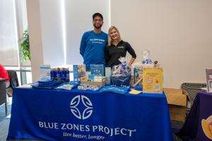 Blue Zones Project, Lehigh Valley, members Robert Almonte and Jennifer Mann, are available to describe the guiding principles of the project to visitors.