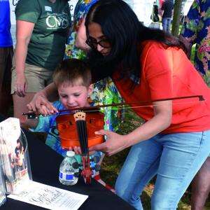 Press Photo by Ed CourrierWalter Fritz, of Emmaus, gets a basic violin lesson from Community Music School board member and South Whitehall resident Nanditha Mudigonda at the CMS booth at the 2025 “Art in the Park” recently. The Allentown-based school provided attendees a chance to try out a variety of instruments at their booth while seeking new students interested in musical and music production instruction.